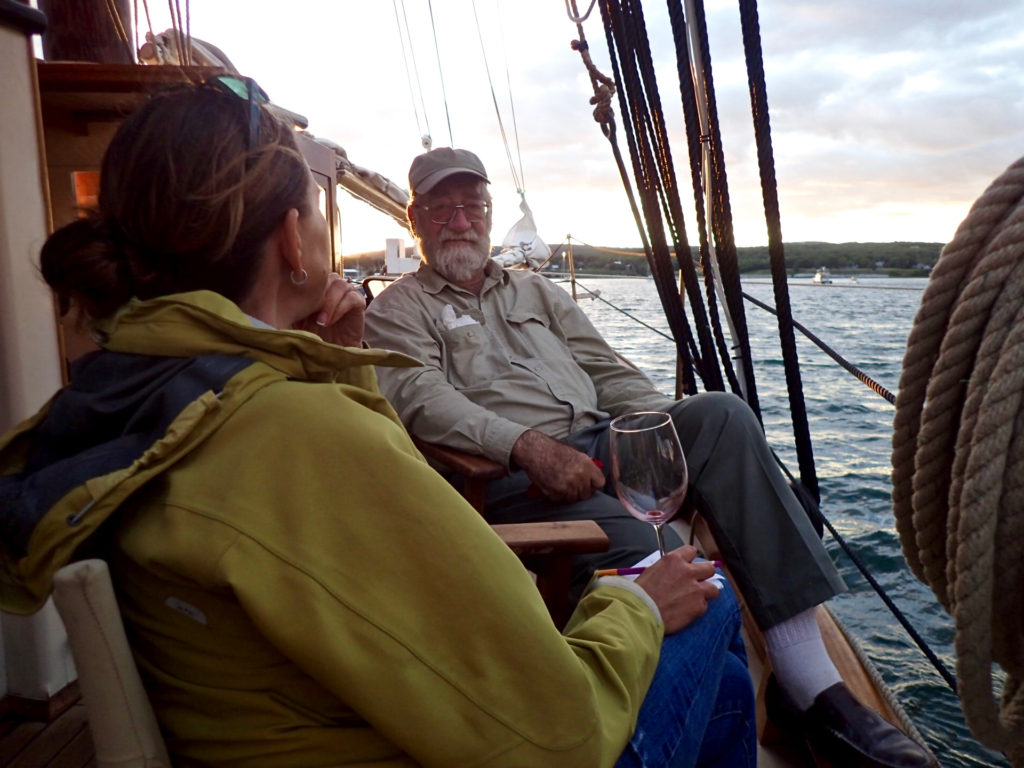 Unbeknownst to us we really were sailing with family. Our voyage included Retired Captains Ken and Ellen Barnes. In 2003 they turned over the helm of Ladona’s sister ship, the Schooner Stephen Taber, to their son Noah. Each evening when we rafted up with the Taber for the wine tastings, we spent time with Captain Noah, his wife Jane and their son Oscar.